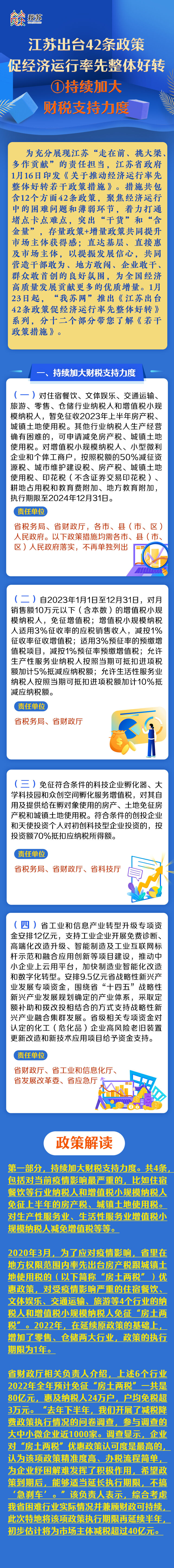 江苏出台42条政策促经济运行率先整体好转①|持续加大财税支持力度