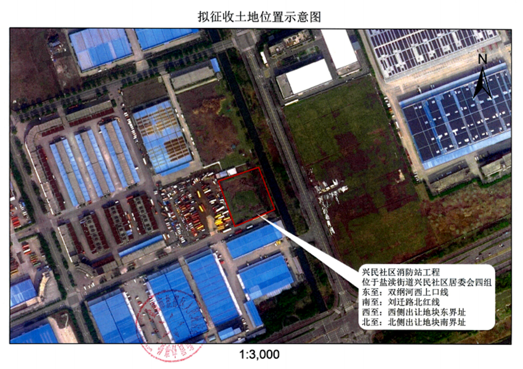 本次拟征收土地位于盐渎街道兴民社区居委会四组范围内。拟征收土地位置详见附图。