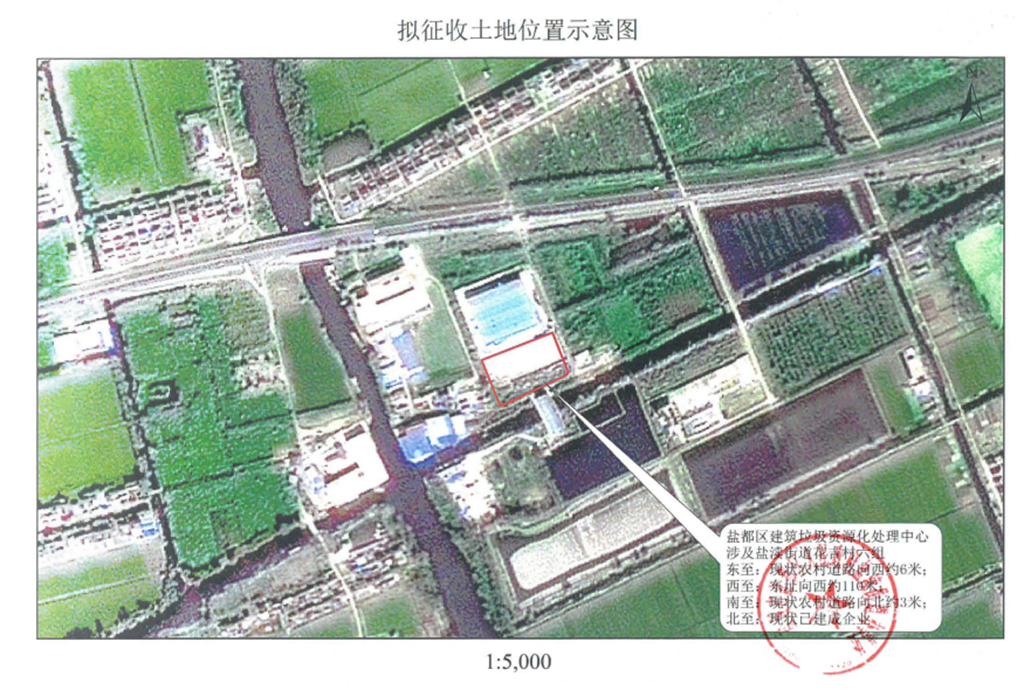 本次拟征收土地位于盐渎街道办事处花吉村六组范围内。拟征收土地位置详见附图。