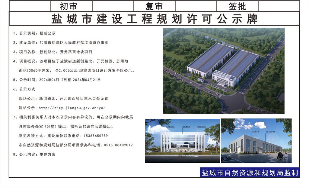 盐城市盐都区人民政府盐渎街道办事处新创路北、开元路西地块项目方案批前公示
