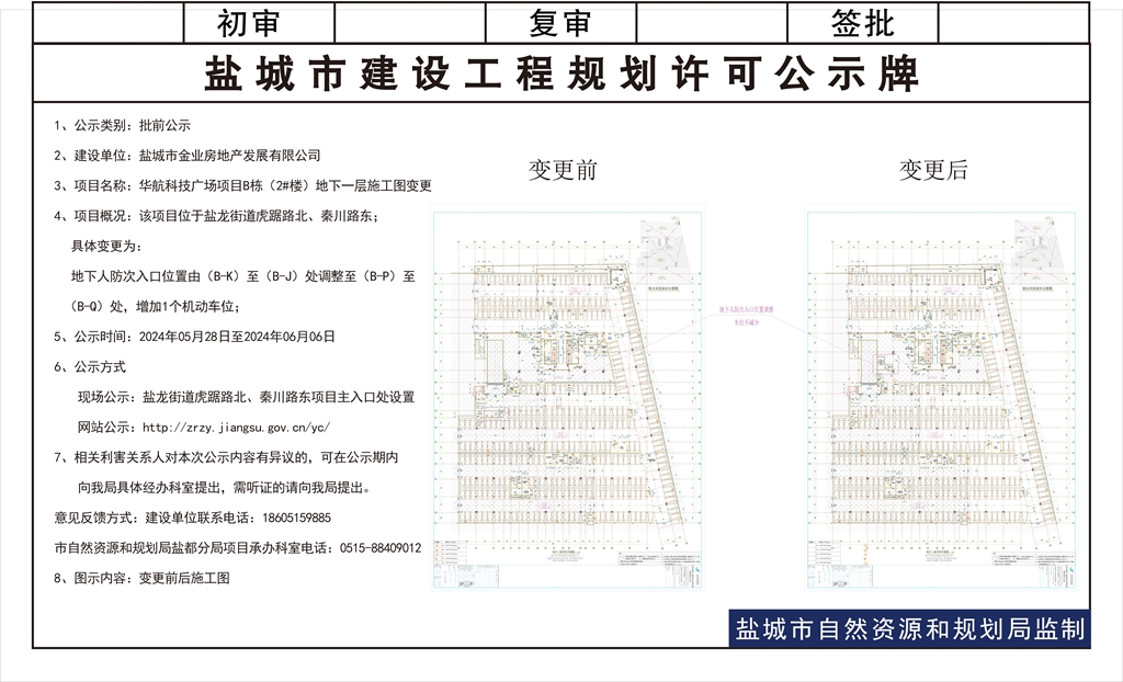 盐城市金业房地产发展有限公司华航科技广场项目B栋(2#楼)施工图变更批前公示
