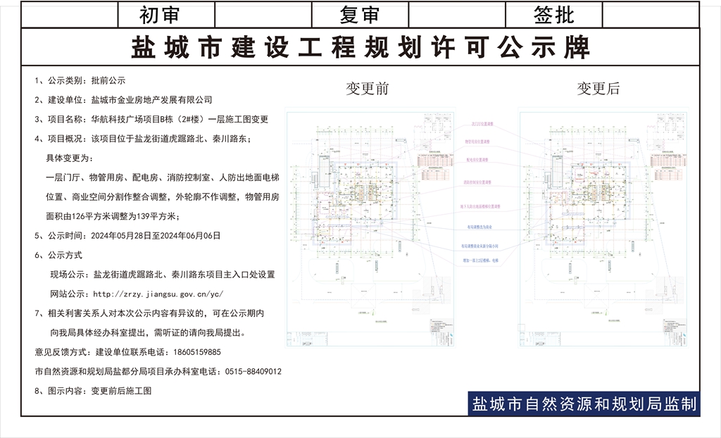 盐城市金业房地产发展有限公司华航科技广场项目B栋(2#楼)施工图变更批前公示