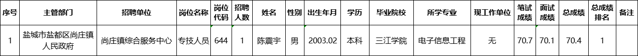 根据《盐城市2025年事业单位统一公开招聘人员公告》要求,经过报名、笔试、资格复审、面试、体检、考察等程序,现将第二批拟聘用人员名单公示如下: