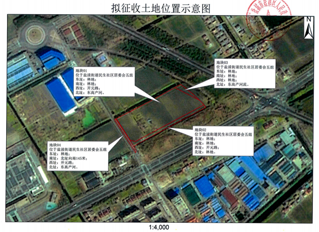 本次拟征收土地位于盐渎街道、盐渎街道民生社区居委会五组范围内。拟征收土地位置详见附图。