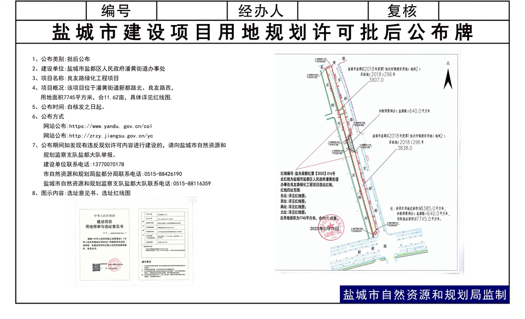 潘黄街道办事处良友路绿化工程项目核发用地预审与选址意见书批后公布