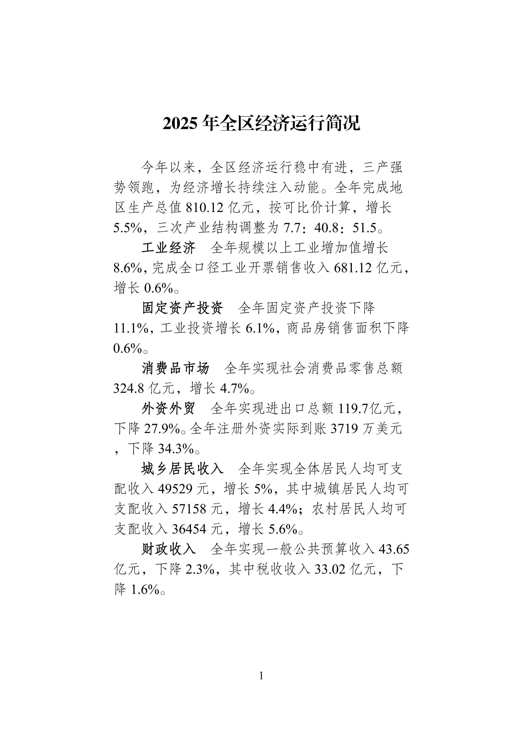 2025年全区经济运行简况