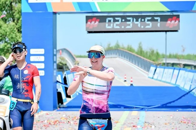 经过数小时的激烈角逐,赛事各组别冠军相继诞生。来自拖家带口铁人三项俱乐部的选手姜智航在游泳赛段出色发挥,在自行车赛段实现赶超,最终以02:09:35的总成绩夺得男子组全场第一。女子组的德国籍选手TAENZER SVENJA SABRINA凭借强大的骑行与跑步能力,以02:27:07的成绩获得女子组全场第一。