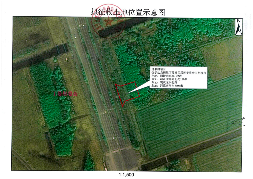 本次拟征收土地位于盐龙街道丁晏社区居委会五组范围内。拟征收土地位置详见附图。